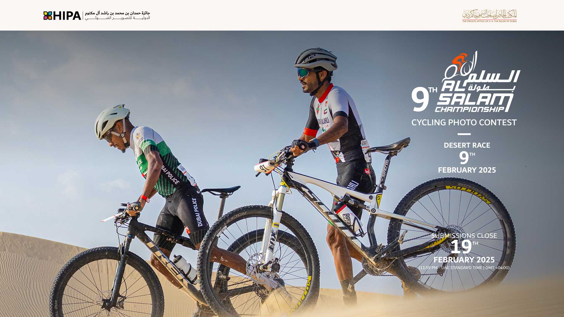 In collaboration with the Al Salam Cycling Championship, HIPA is thrilled to announce the launch of the 9TH AL SALAM CHAMPIONSHIP DESERT RACE PHOTO CONTEST, celebrating the synergy of athletic excellence and artistic expression.